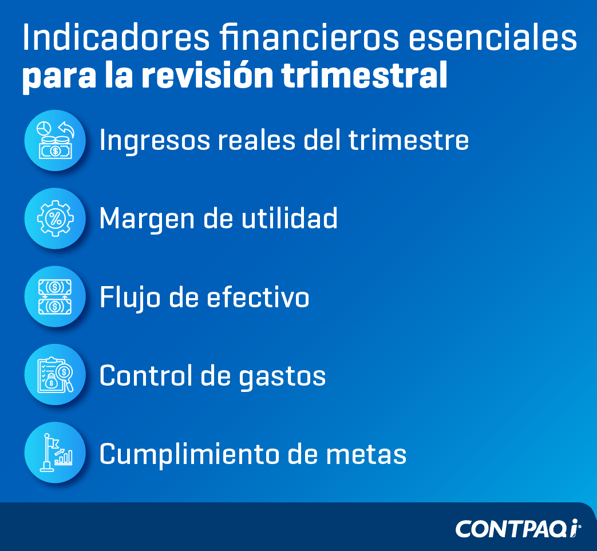 Para que la planeación financiera trimestral sea efectiva, es fundamental dar seguimiento a indicadores clave como: