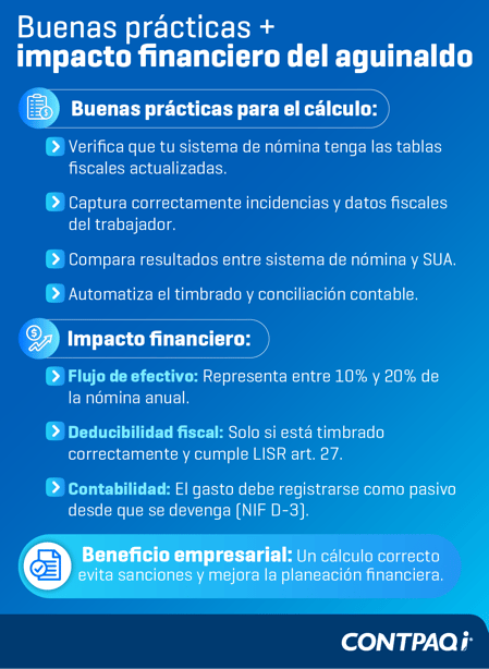 El pago del aguinaldo también tiene un impacto directo en la planeación financiera y contable de las empresas. No se trata solo de un gasto estacional, sino de una obligación fiscal deducible que influye en el flujo de efectivo, la carga impositiva y los registros contables de cierre.