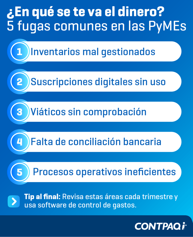 - Gastos hormiga, como viáticos no justificados o consumos menores que, en conjunto, representan sumas significativas.